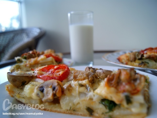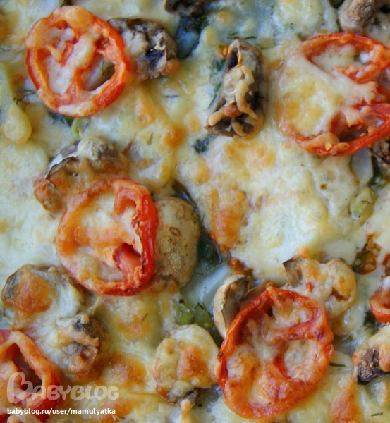 НАЧИНКА: тонко нарезать картофель, мелко укроп и лук, кусочками сливочное масло ( кто любит майонез, можно вместо масла маонез), перемешать , выложить на тесто, сверху уложить равномерно половинки грибов шампиньонов, сверху тонко нарезанные кружочки помидоров, посыпать сыром и в духовку при 180 градусах, пока не зарумянится.