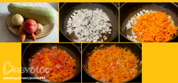 4. Лук и морковь спассеровать, добавить помидор.