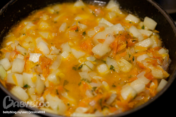 8. Тушить до готовности кабачка.