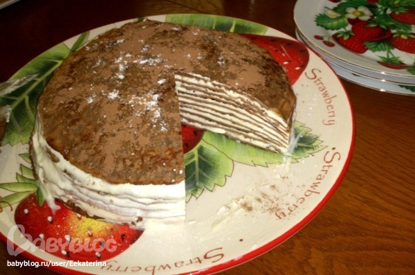 Получилось ОЧЕНЬ вкусно, поэтому я повторила это чудо второй раз но видоизменив рецепт, т.е. блинчики пекла на кефире и без какао, а в крем вместо обычного творога добавила творог агушу, получилось ещё вкуснее, поэтому видимо фото второго шедевра сделать не успела :) !!!!