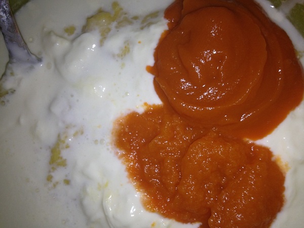 далеее...моя импровизация!!!!тк Со пюрешки ест неохотно и всего по 1-2 ложки,то в холодильнике стояло 2 баночки-я решила их тоже добавить)))хуже не будет))