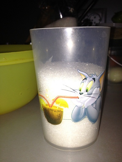 разбиваем в миску яйца,взбиваем вилкой и всыпаем сахар-снова взбиваем.