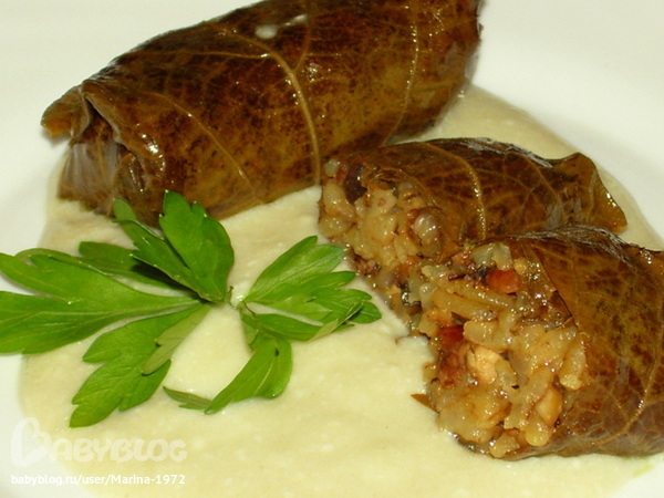 Виноградные листья съедобные и очень вкусные, с кислинкой. Нужны молодые листочки, тогда они мягкие и нежные получаются))) Долму можно делать и из липовых листьев, тоже очень вкусно )))