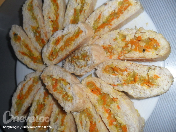 Блюда из фарша, котлетыВариаций на тему куриного рулета великое множество, а я предлагаю свой:
