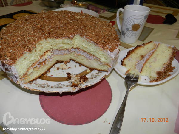 крем:одна банка сгущенки ,сливочное масло одна пачка, творог грамм 100 и две ложки любого джема))все ингредиенты взбить миксером на средней скорости мин 10-20. Тортик получился ооочень даже ничего муж с дочкай слопали на ура))) сама не пробовала на диете пока!!!