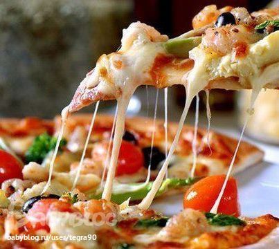 7. Выпекать в духовке при температуре 220 градусов 15 минут. После приготовления сразу есть пиццу! Для того, чтобы пицца не отсырела от начинки и оставалась хрустящей оставить на решетке или на деревянной доске.
