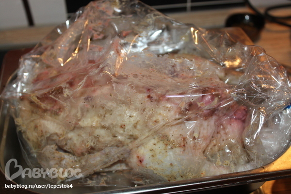Запекала я ее в рукаве примерно 2 часа. Утка получилась очень вкусная, мясо мягкое.