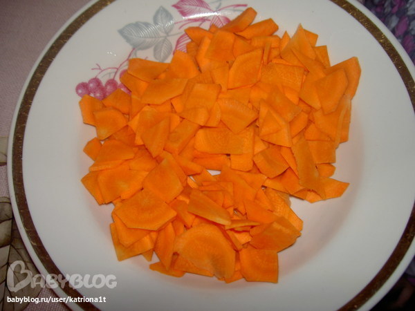 Нашинкуем морковь (если любите крупно, шинкуйте кольцами, я предпочитаю помельче, главное, чтобы морковь было видно в готовом блюде):