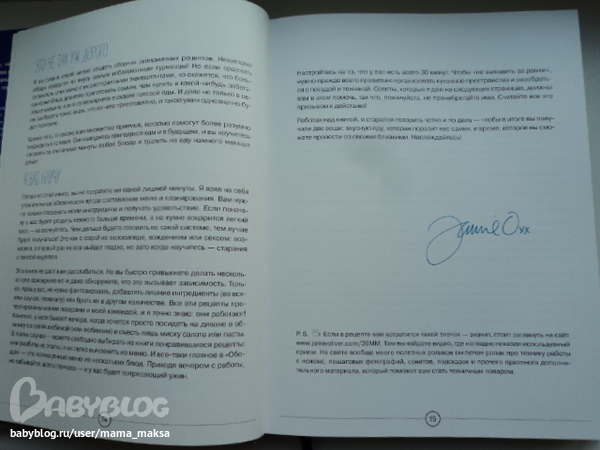 Лиха беда начало. Но в то же время, нужно делать скидку на то, что когда Джейми готовит обед из предложенных на развороте блюд, то вся посуда стоит перед ним, продукты подготовлены, отмеряны. Бери и делай.
