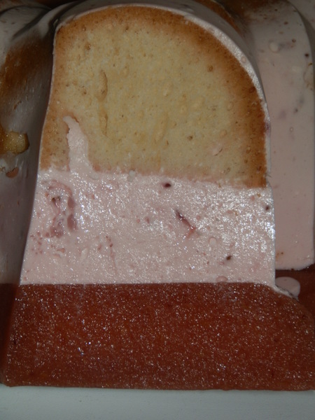Выпекаем бисквит,остужаем его и выкладываем в форму.300 гр.сметаны взбиваем с 4 стол.ложками сахара и 300 гр.йорурта.Пакетик желатина настаиваем в двух ложках холодной воды,растворяем и вводим в смесь. Массу выливаем на бисквит и ставим в холод на час.500 гр любых фруктов по вкусу(у меня клубника и персики) взбиваем в однородную массу блендором. Опять проводим процедуры с желатином и добавляем уже в фруктовую смесь.Ее выкладываем поверх сливочной массы и оставляем в холодильнике на ночь!