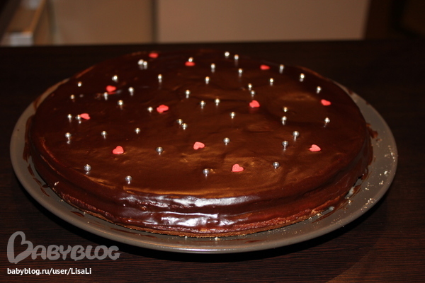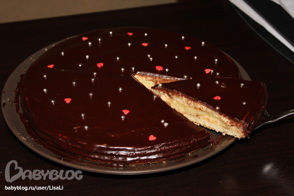 Готовые коржи пропитываем (я пропитывала разведенным в воде шериданом) промазываем кремом и покрываем глазурью. Готовый торт ставим на несколько часов в холодильник, а лучше не менее, чем на 12 часов.