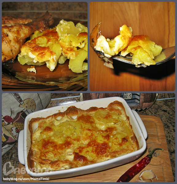 Картофель очистить и нарезать кружочками. Хорошенько смыть крахмал. Далее в сотейник наливаем чуть-чуть воды и большую часть молока. Закладываем картофель и варим почти до готовности, в процессе варки необходимо посолить картофель. Выключаем плиту, добавляем зубчик натертого чеснока и розмарин, высыпаем тертый сыр и все аккуратно перемешиваем. (сыр нужно добавлять аккуратно, иначе он расплавится и будет комом). Выкладываем шумовкой в форму для выпечки и запекаем до полной готовности, до образования аппетитной корочки на картошке.