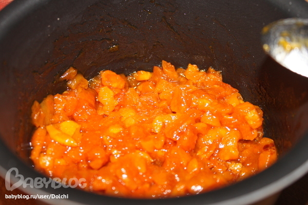 9. Начинка из кураги. Курагу заливаем водой минут на 20, сливаем. Мелко режем, перемешиваем с сахаром, прогреваем на плите минут 5 на маленьком огне, все.