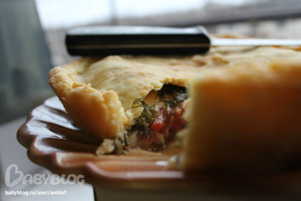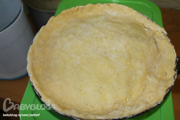 Замешиваем тесто:2 стакана муки,1 яйцо,стакан натертого сыра,соль,чуть-чуть холодной воды,100 гр. слив.масла.Берем две трети теста,раскатываем блин.Форму смазываем раст.маслом.Кладем блин в неё,чтобы получилось донышко с бортиками.Выкладываем начинку.