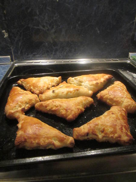 Вечером закупилась слоеным тестом - теперь таким, какое нужно - в пластинах и несладкое. Получился настоящий семейный ужин.