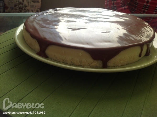 Хорошо все перемешиваем и если понадобится, добавляем еще сливок - должна получиться жидковатая глазурь, которой можно залить торт.