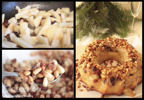 Орехи обжарить на сухой сковороде до золотистого цвета, 4 мин. Остудить пудинг в форме, перевернуть на сервировочное блюдо и украсить орешками. Можно посыпать сахарной пудрой.