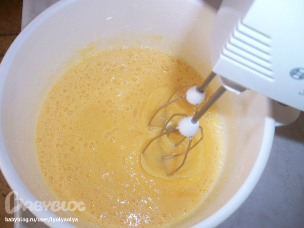 Смешиваем сахар+яйца+соду+растаплив.маргарин+ванильн.сахар