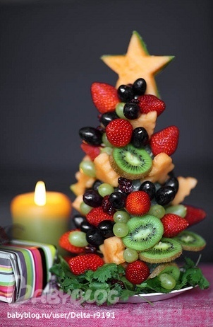 Ну и конечно,попробую сделать елочку из фруктов(очень уж она праздничная и красивая)))
