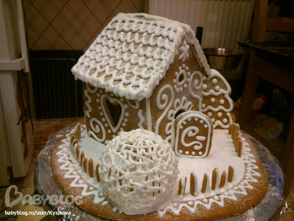 Долго я смотрела на всех "пекущих дома" и не выдержала душа поэта)))) Решила доченьке тоже такой подарочек забабахать. Кривовато конечно, но я в первый раз такое делаю...Я как-то больше по тортам.... Даже рецепта толком не было.. так сказать все делала эксперементально и приходилось "действовать по обстоятельствам". В следующем году будим печь уже вдвоем, с моей маленькой помошницей. Рецепт обкатку прошел! Все съедобно, ароматно и вкусно))) Уже представляю как она его ...попробует..на НГ...интересно сколько эта конструкция продержится перед моей разбойницей????