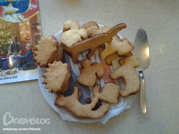 Новогодние и рождественские блюдахотела конечно по Марининому рецепту печь, но у меня или щас или никогда, а в Маринином тесто настаивать сутки на холоде надо, тч взяла упрощенный Анастасии Скрипкиной.. и вот что вышло, я все сухие ингридиенты смешала а потом в них мед и яички добавила, вместо корицы, которой у меня почему то не оказалось положила остатки разводной смеси доя глинтвейна, ложку джинжира и чуток черного перца, это я решила всеж Маринину нотку вплести, получилось вкусно, но немного ломковато, формочки икеевские звери завалялись, для себя нюанс.. лось, лиса и уоитка плохо выходят, очень тяжело переносить на лист и ломаются пока снимаешь, ежик белка и мишка хорошие:.. делала с детьми, в итоге истерика сначала была у Антохи, что не дала реста сырого наестся, а потом девчонки довели друг друга и меня кто чего будет есть, еле спать улеглись, но начало совместному творчеству положено, зотя на 6 метровой кухне.. я и трое детей и горячая духовка.. это экстрим скажу я вам, детей пока запихивала зверей в печь выставила за калитку.. еще и поэтому поводу были печальки: