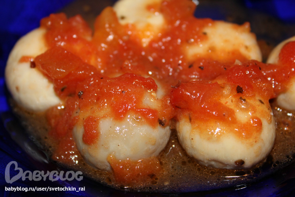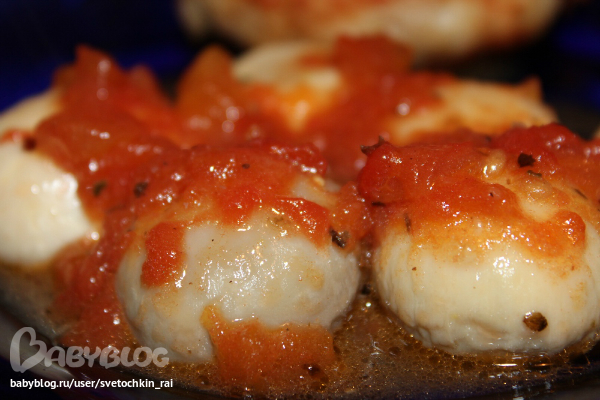 Помидоры тщательно помойте под струёй холодной воды, очистите от кожицы и семян, мелко нашинкуйте острым ножом. Готовую массу выложите в кастрюлю, добавьте оливковое масло, полстакана воды, специи, сок половинки лимона и цедру, поставьте на небольшой огонь и варите примерно в течение 5 минут. Свежие шампиньоны помойте, аккуратно очистите, стараясь не повредить шляпки, дайте слегка обсохнуть. Затем добавьте в томатный соус и варите ещё 5 минут, посолите по вкусу. После этого грибы достаньте шумовкой, а соус варите ещё какое-то время до тех пор, пока он не уменьшится в объёме примерно в 2 раза. Готовые грибы выложите в неглубокую салатницу или на небольшое плоское блюдо и полейте сверху получившимся соусом. Это блюдо можно подавать на стол как самостоятельную закуску в горячем или холодном виде, а также в качестве гарнира к курице, рыбе, отварному мясу.