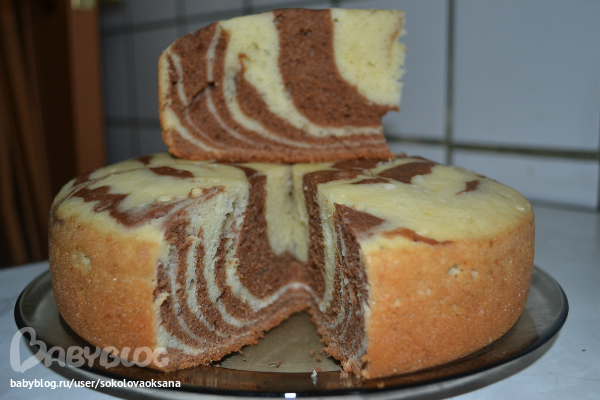 РЕЦЕПТ: 2 мул.стакана сахара, 2,5 мул.стакана муки, 4 яйца, 200гр.сметаны, 100гр.масла сливочного, 2ст.ложки какао, 1ч.ложку разрыхлителя, 1пак. ванилина. Яйца взбить миксером с сахаром, добавить сметану, ванилин,разрыхлитель, затем добавляем муку и в конце растопленное сливочное масло (горячее,но не кипяток). Тесто разделить на 2 равные части, в одну добавить какао. Чашу мульти смазать маслом и выкладываем тесто ровно по центру по 2 ст. ложки, далее чередуя .РЕЖИМ ВЫПЕЧКА 65 МИН (у меня ПАНАСОНИК 18)