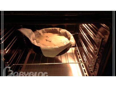 Тесто получается как на оладьи. Выливаем половину теста в разъемную форму, начинку, сверху остальное тесто