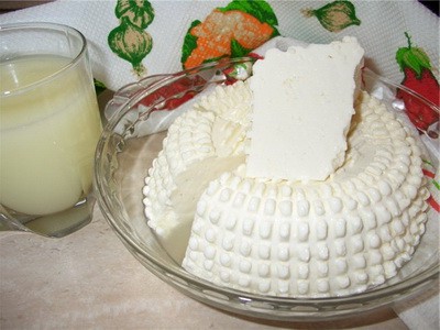 Молоко налить в большую кастрюлю, поставьте ее на огонь и довести молоко до кипения. Добавить творог и варите, помешивая, около 3-5 минут на слабом огне, пока сыворотка полностью не отделится.Чистую марлю поднести под струю воды и слегка отожать, сложив ее в 2 слоя, и застелить ей дуршлаг.Горячую творожную массу перелить в дуршлаг.