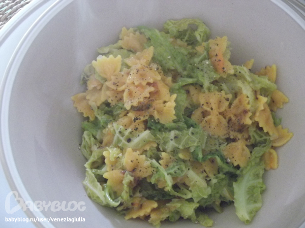 Сейчас зима, и савойская капуста очень кстати подходит для этого периода. Салаты, паста, овощные супы и др. всевозможные комбинации с этим овощем просто и с пользой для здоровья помогут перенести нам ненастную пору года. На вкус она более острее, насыщеннее что ли, чем белокочанная. Листики такие пористые и хрустящие. Рекомендовано: сразу готовить и не хранить в холодильнике, так как она теряет при хранении свои драгоценные свойства. Она очень богата своим содержанием минеральных солей (калий, кальций, фосфор), микроэлементов и витаминов (особенно фолиевая кислота, C, Е). Является противоанемичным и противоопухолевым продуктом, свежий сок из нее используют как заживляющее средство при язвах. На 100 г продукта: 2,8 г протеины, 2,9 г углеводы, 0,3 г жиры, 107 kJ/26 kсаlОдним словом, этот продукт можно употреблять сырым (достаточно мелко порезать в салаты) или слегка "обработав" на пару. Единственное, не нужно переваривать и злоупотреблять специями, маслом. Очень "по - итальянски" соединять ее с пастой. Итак, блюдо "паста с савойской капустой и кремом из картофеля". НЕ ДЛЯ ЛЮБИТЕЛЕЙ МАКАРОН И КУРИЦЫ, СОСИСОК И КОЛБАС.