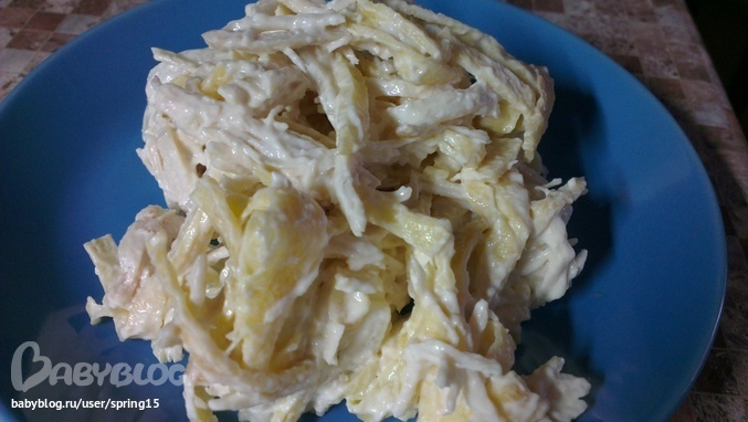 Салатик вкусняшка !!! Вместо курочки можно свинину положить или ветчину))) .