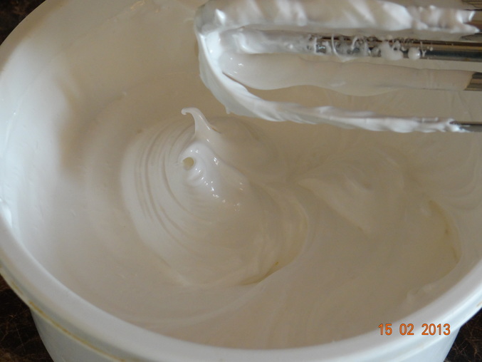 Белки отделить от желтков и взбить с 1 стаканом сахара в густую пену;