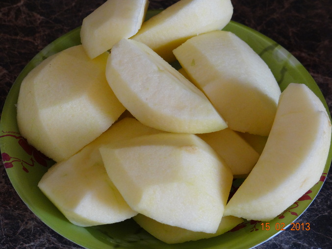 Яблоки очистить от сердцевины и кожуры, порезать кубиками, подмешать к тесту;