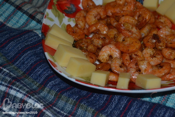 Блюда из рыбы и морепродуктовКреветки, лучше королевские,размораживаем естественным путем, чистим (самый трудоемкий процесс). Разогреваем в сковороде масло, обжариваем креветки в течении 5-7минут.