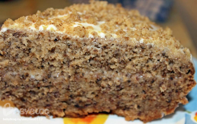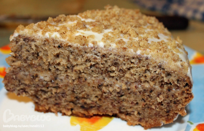 Печенья, пирожные, торты, пончики, кексыЗдесь исходник, а здесь его брат-близнец, разрезанный на 2 части, прослоенный сметанным кремом и политый им же сверху. А еще, сверху грецкие орешки. Рецепт, если нужен, в предыдущем посте.