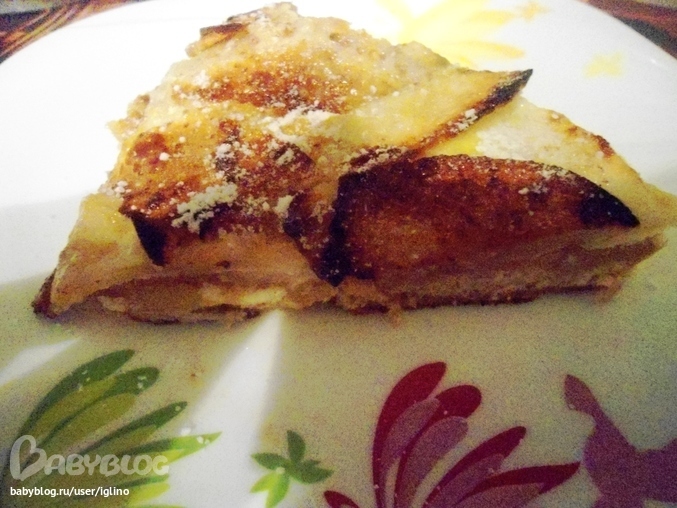 Запекала примерно 30 мин.Сверху посыпала сах.пудрой.Резать лучше когда остынет.