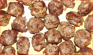 1. Из фарша (с луком и добавлением своих любимых специй) сформировать маленькие шарики (диаметром 3 см) и обжарить эти котлетки до готовности.