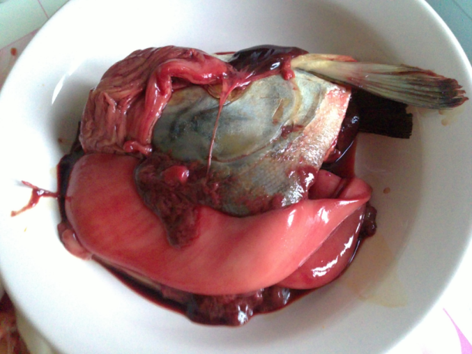 я очень нечасто делаю рыбу. обычно филе беру. тут купила целую замороженную горбушу. Стала разделывать, а у нее все внутренности кровавые-прекровавые, а сама она стала прямо в руках разваливаться.