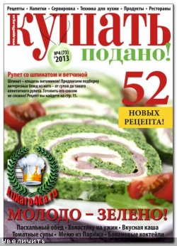 Книги и журналы по кулинарии«Кушать подано» – для женщин, которые регулярно готовят для своей семьи и при этом хотят, чтобы их меню было разнообразным, вкусным и лёгким в приготовлении. В издании представлены рецепты вкусных блюд, приготовление которых не составит сложностей, так как все изложено в виде подробных описаний и красочных фото.