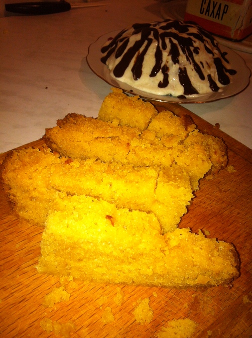 Да еще и куски бисквита остались, съели как пирог, очень вкусно.