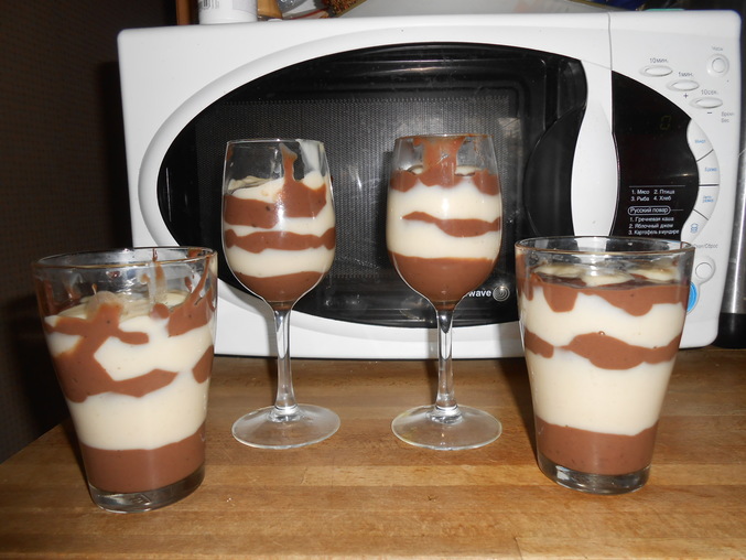 И ещё одна хитрость, которую я попробую применить в следующий раз - скорее всего, выкладывать десерт в такие высокие стаканы будет удобнее не ложкой, как я делала раньше, а с помощью кулинарного шприца, или обычных полиэтиленовых пакетов.