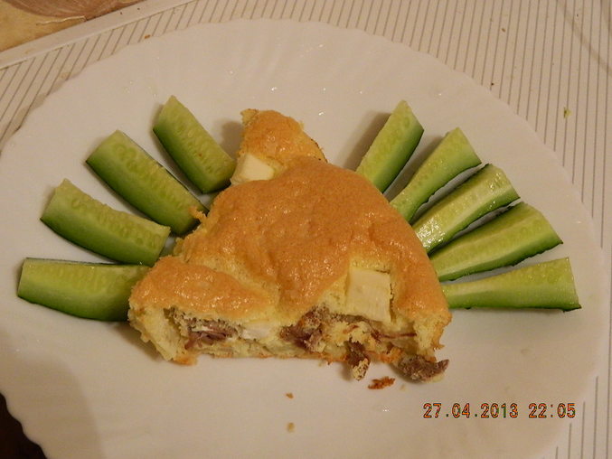 обычный бисквит 6 яиц (только без сахара, а с щепоткой соли замесила желтки)