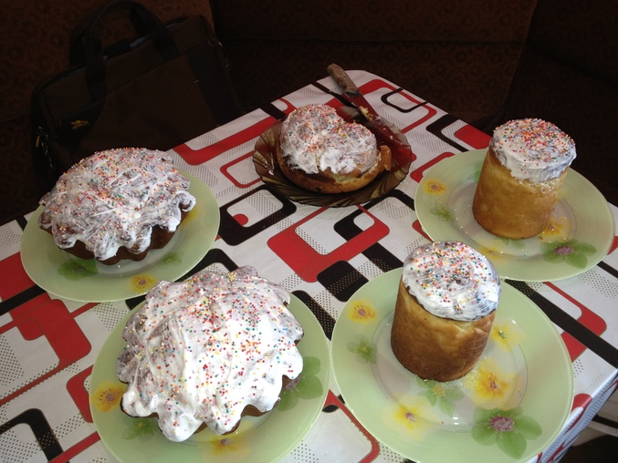 В этом году я первый раз решила сама испечь пасхи. Мне не нравятся магазинные, несладкие они какие-то...Вот мое искусство, оцените..