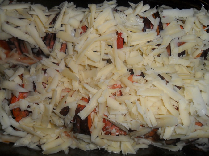 Но я очень люблю запеченный сыр, поэтому за 10 минут до приготовления запеканки, я посыпала ее тертым сыром.