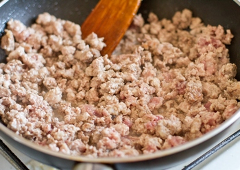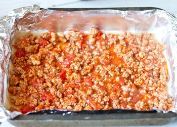 Далее кладем треть болоньезе.