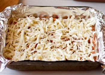 Посыпаем тертой моцареллой.