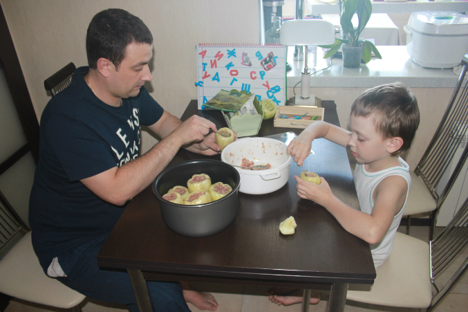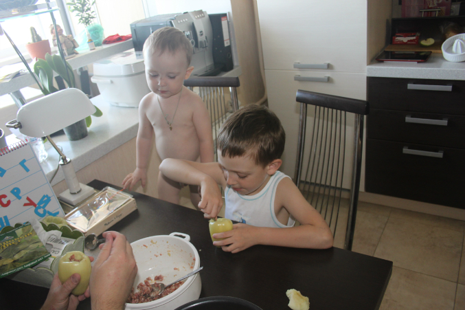 Готовим дружно, всей семьей) Муж вырезает, старший сын вынимает, маленький смотрит где бы что съесть, ну а я снимаю)