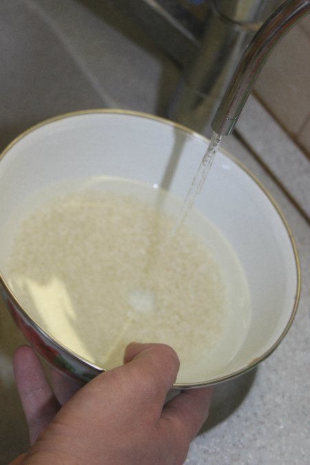 Стакан у нас 250мл, риса нужно чуть больше половины стакана. Рис желатильно промывать фильтрованной водой, тк он имеет способность све в себя впитывать. Я обычно промываю рис в 7ми водах.