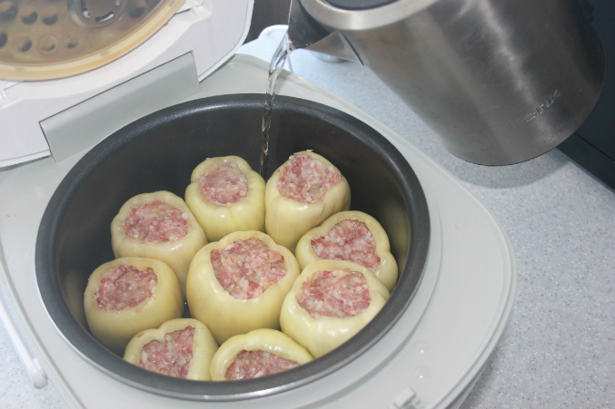 2. Подготовленные перцы, уложенные в чашу мультиварки откладываем. Начинаем заниматься начинкой.