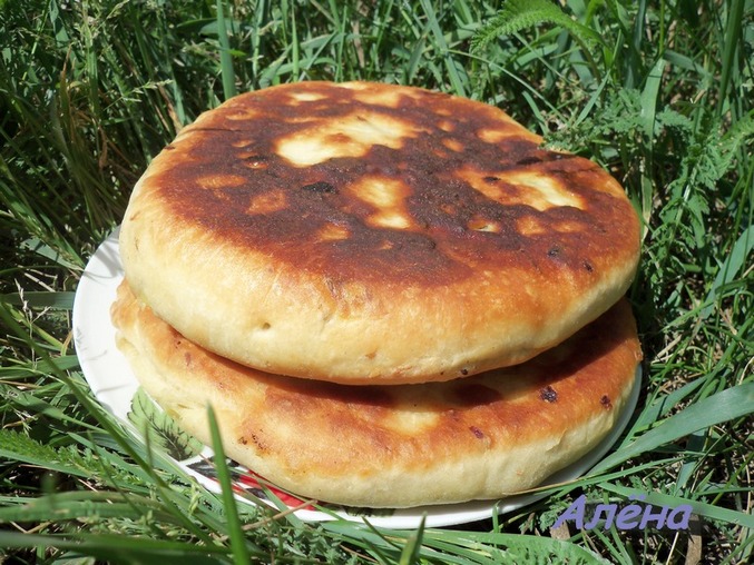 Сковороду смазать маслом и выпекать лепёшку под крышкой на маленьком огне до золотистой корочки.